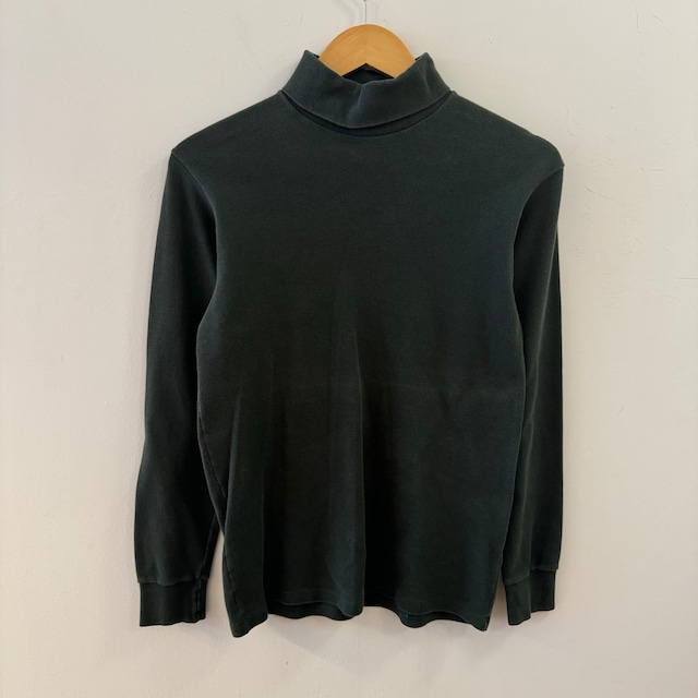 商品詳細 : 高ネックデザインが特徴的なロングTシャツです!シンプルながらもおしゃれな印象を与え、自宅でのリラックスタイムから外出時のカジュアルスタイルまで幅広く活躍します。肌触りの良いコットン素材を使用しており、通気性にも優れているため、一日中快適に着用いただけます。このトレンド感あふれるTシャツで、あなたのスタイルに洗練されたアクセントを加えることができるでしょう。 color : dark green material : cotton 100% condition : フロント部分にうっすらと日焼けの跡あり。 size表記 : M 着丈 : 57㎝ 身幅 : 44㎝ 肩幅 : 48㎝ 袖丈 : 54.5㎝ ※注意事項 返品・交換はできません。あらかじめご了承下さい。 商品は全て検品していますが、色落ちやダメージなど出来る限り記載致しますが、稀にわずかなダメージを見落とす場合がございます。 また、製品特有の匂いや、生地のスレ、ほつれ等がある場合がございます。 さらに、現時点では確認できない製品特有の経年による風合いやダメージが出てくる可能性もございます。 あらかじめご了承ください。 ご覧頂く環境により、実際の商品と色味が異なる場合がございます。 あらかじめご了承下さい。 以上をご確認の上、ご理解いただいた上でのご購入をお願い致します。