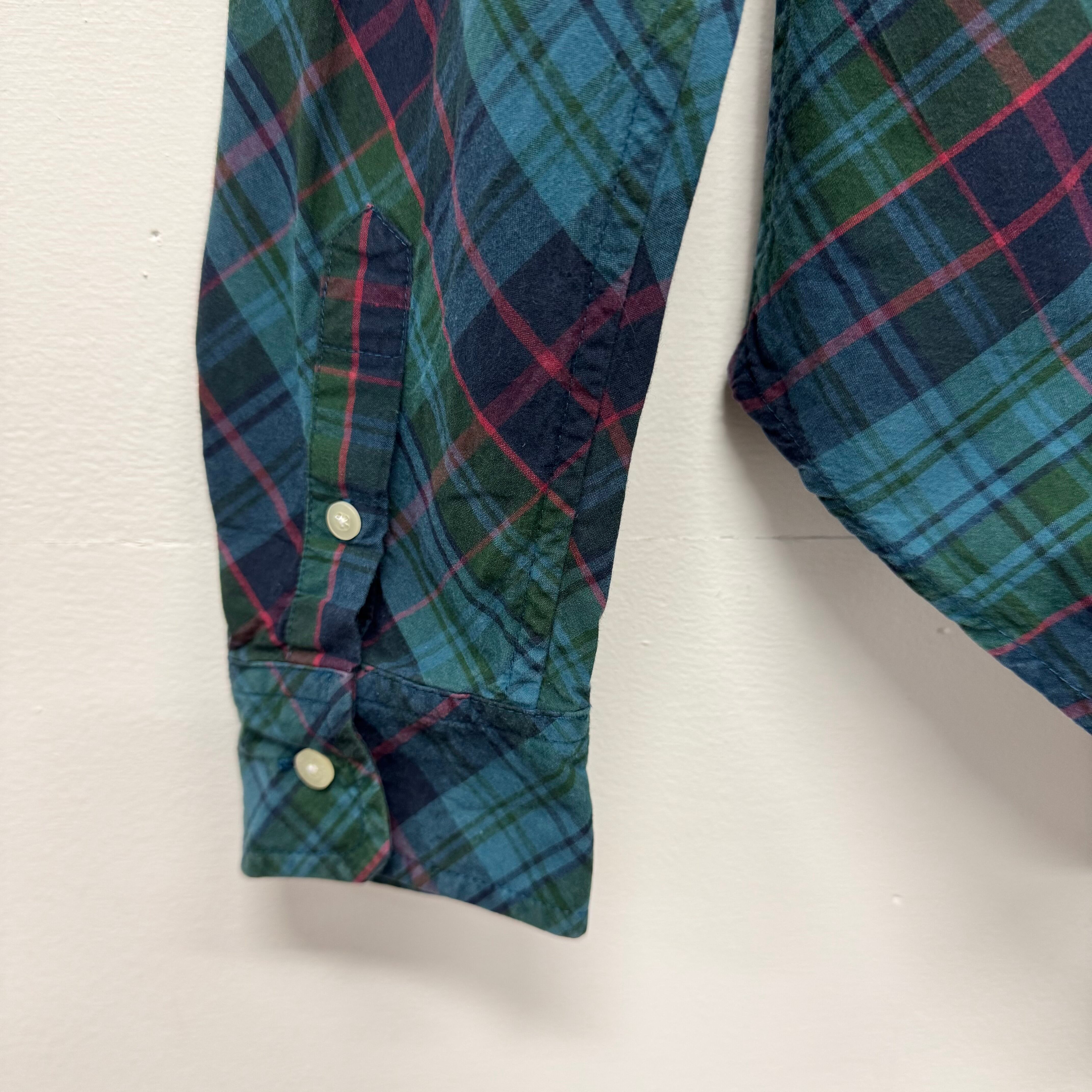 商品詳細 : スリランカ製のラルフローレンのシャツです。生地を斜めに使い、斜めに配置されたチェック柄は他のシャツに差がつく一枚です。