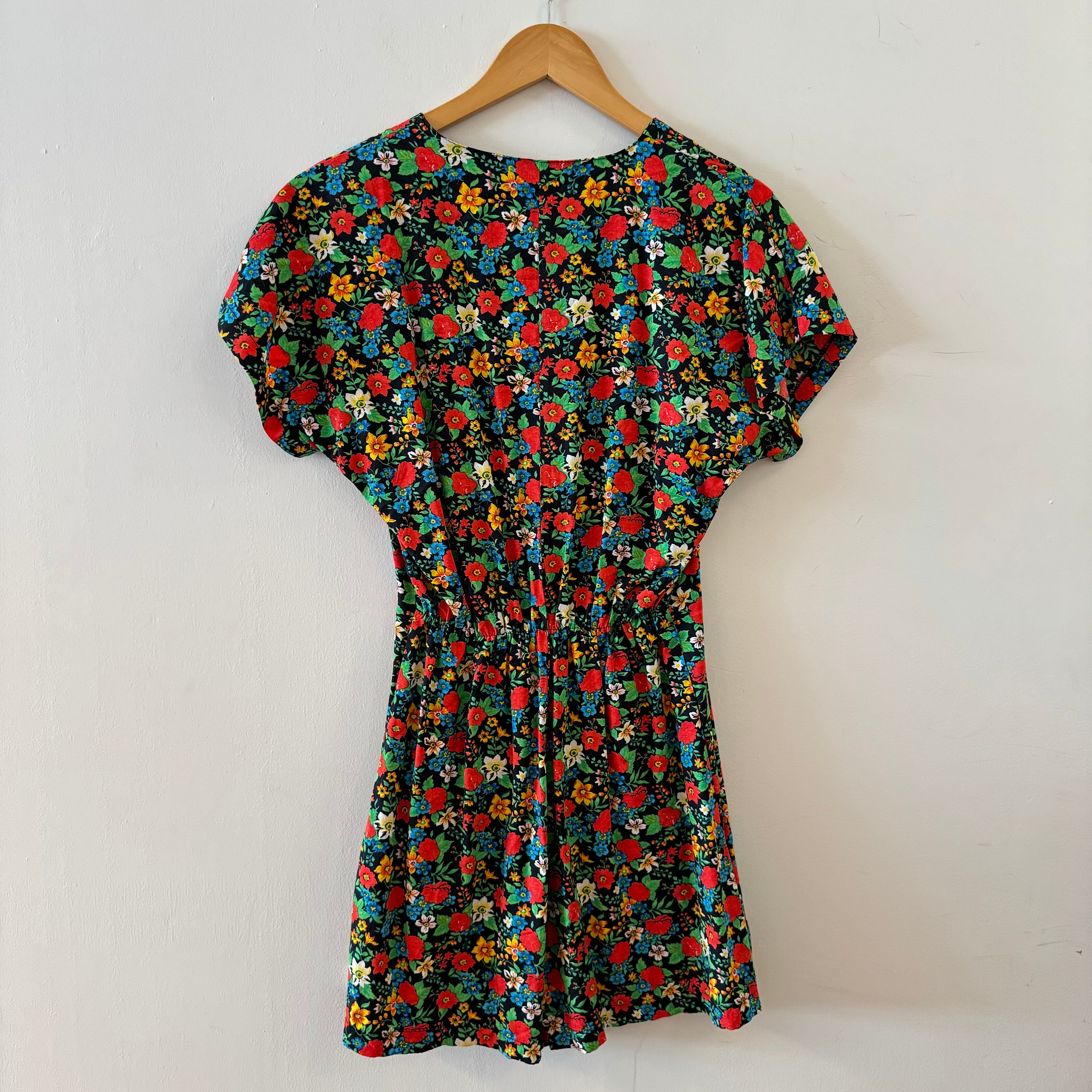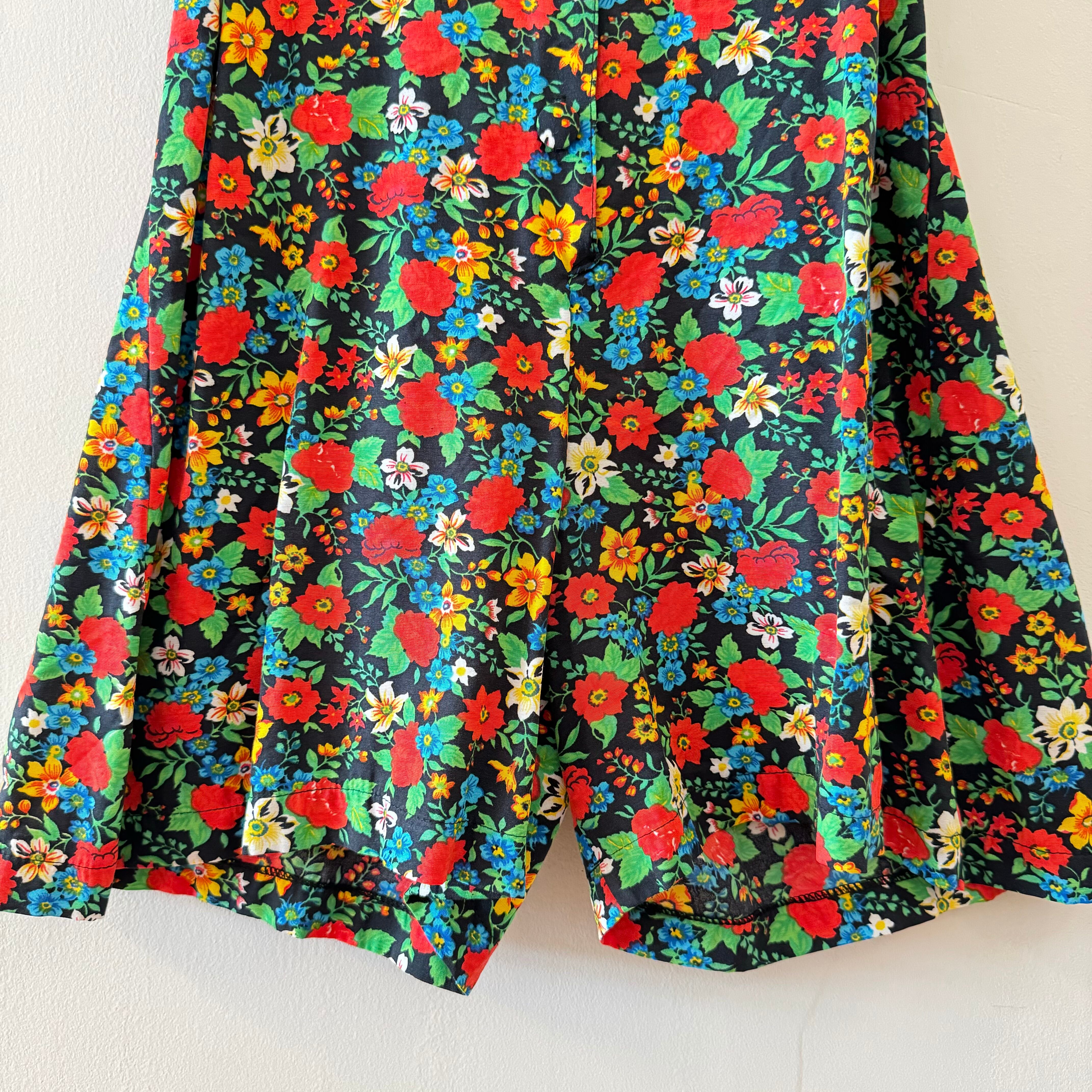 商品詳細 : カラフルな小花が一面に咲き誇る、華やかなフラワープリントのキュロットワンピース。