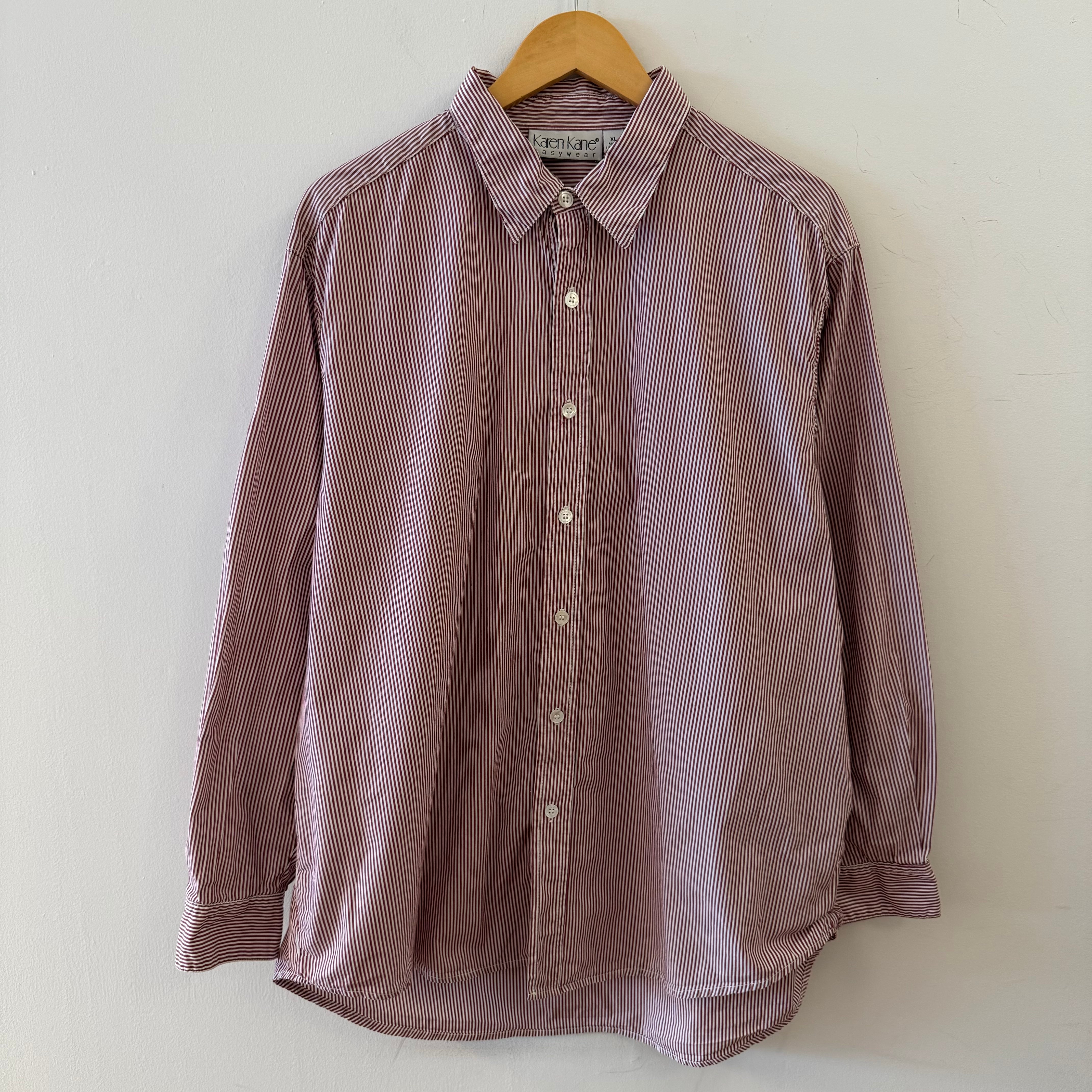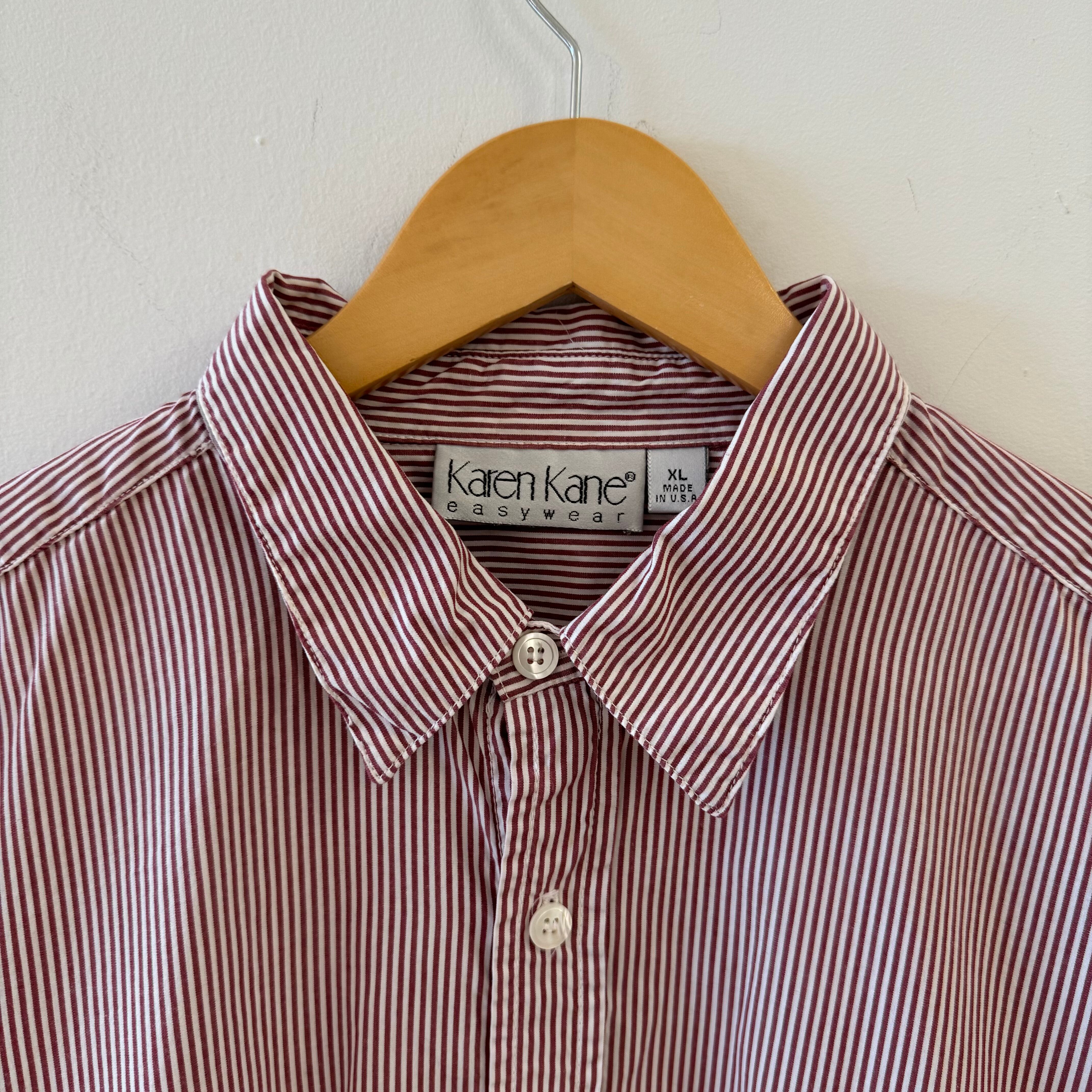 商品詳細 : Karen Kane(カレン・ケーン)のバーガンディストライプ長袖シャツ。