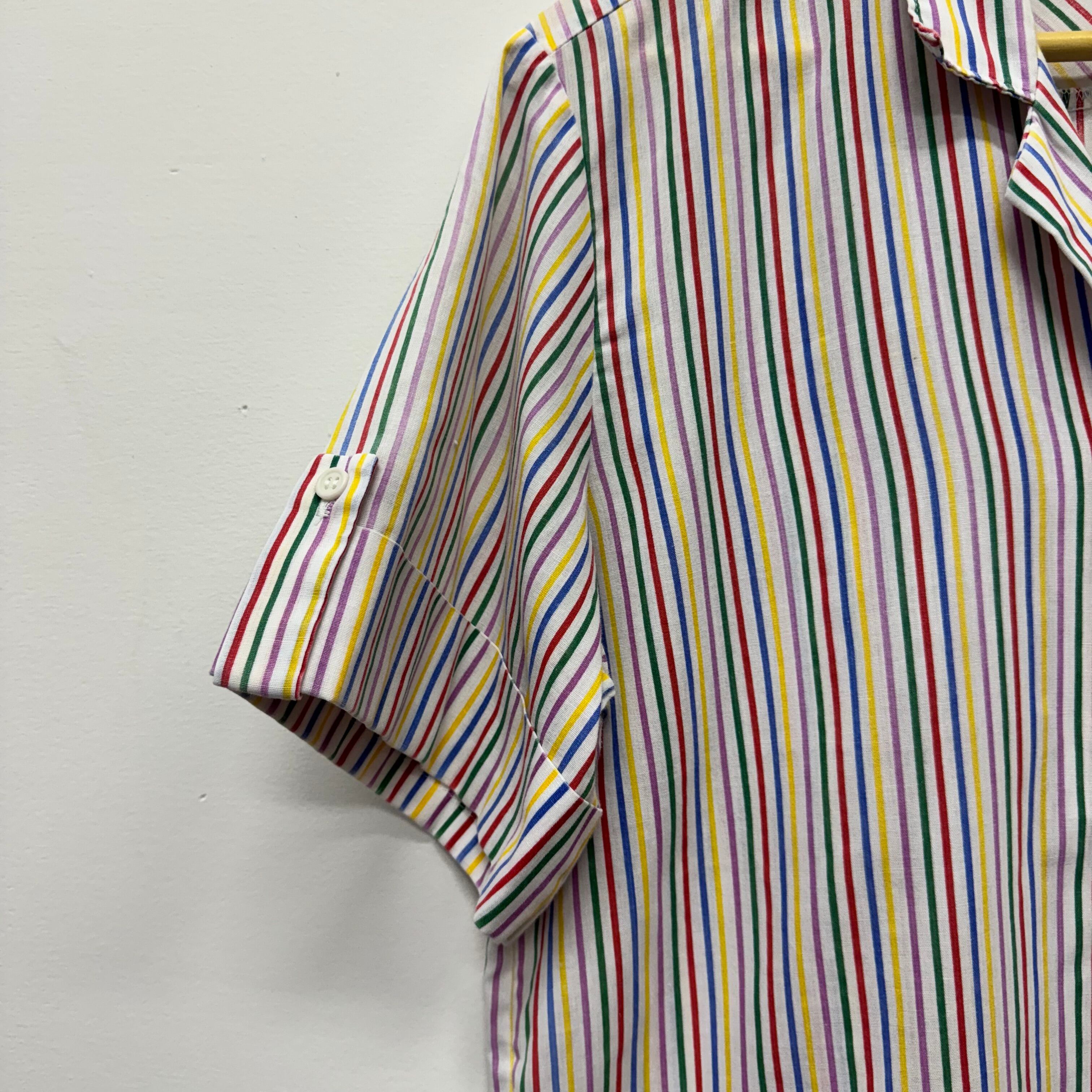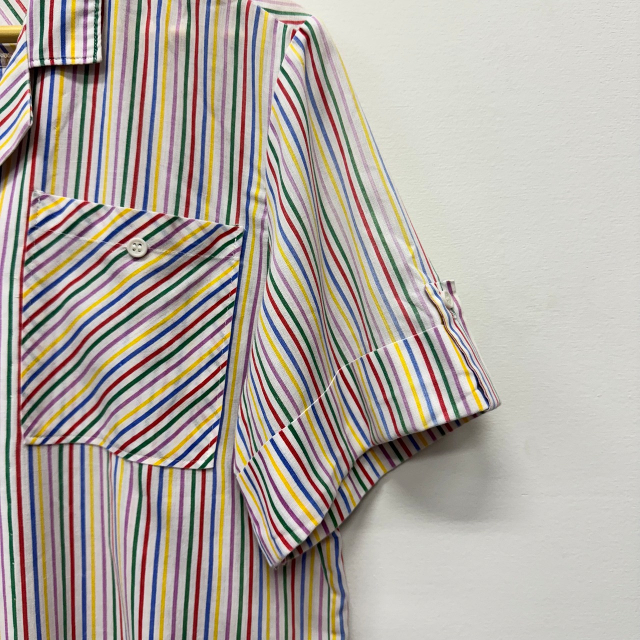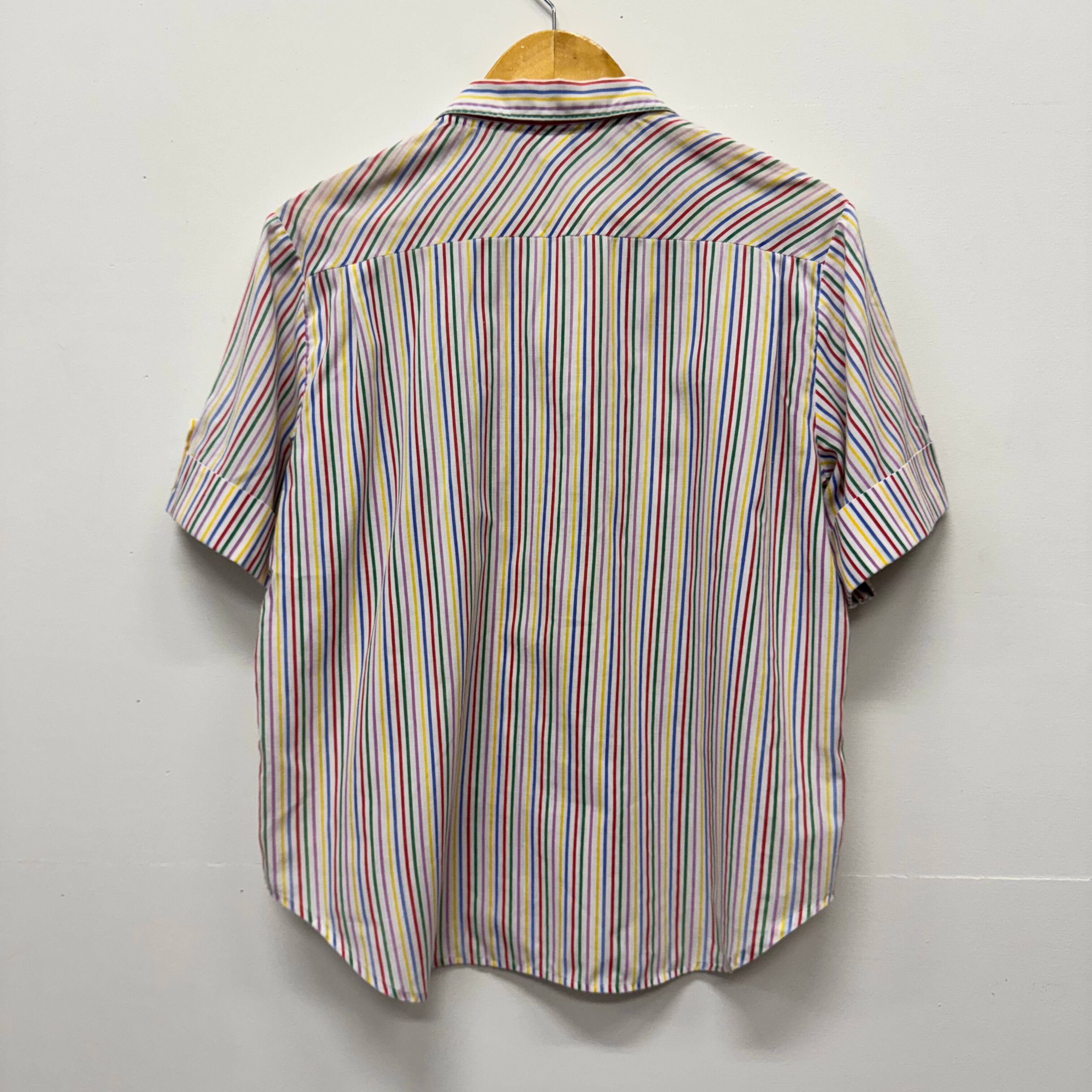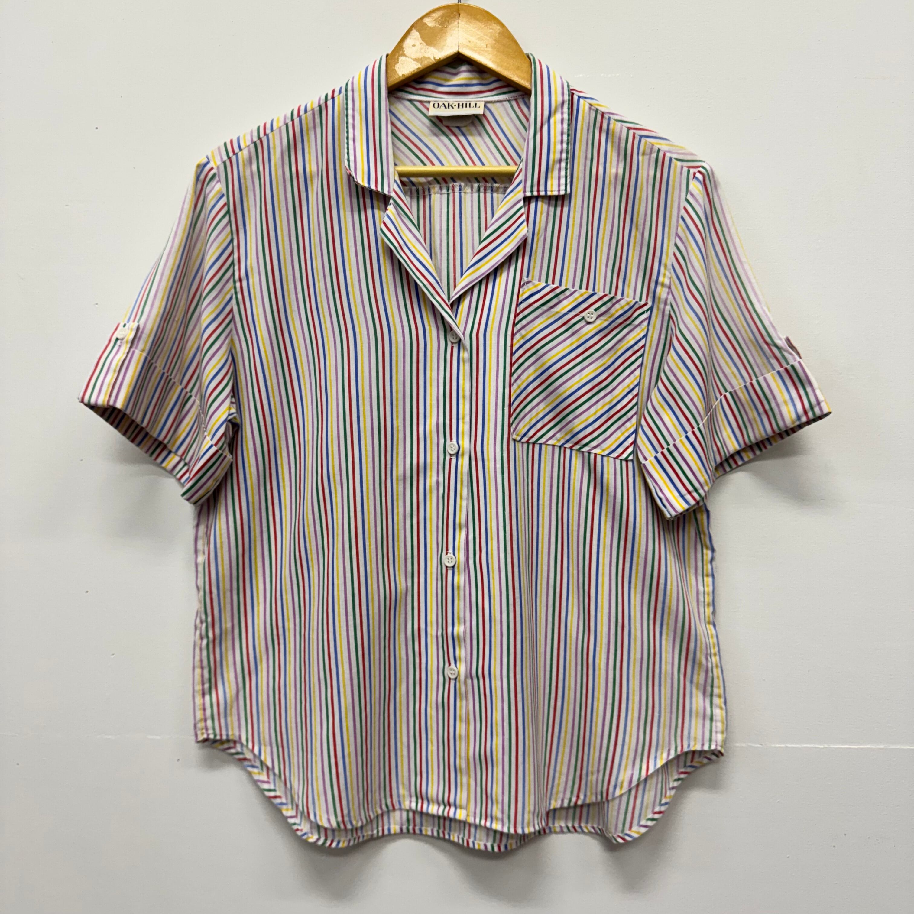 商品詳細 : 鮮やかなマルチカラーのストライプが印象的な Oak Hill(オークヒル) の半袖シャツです。