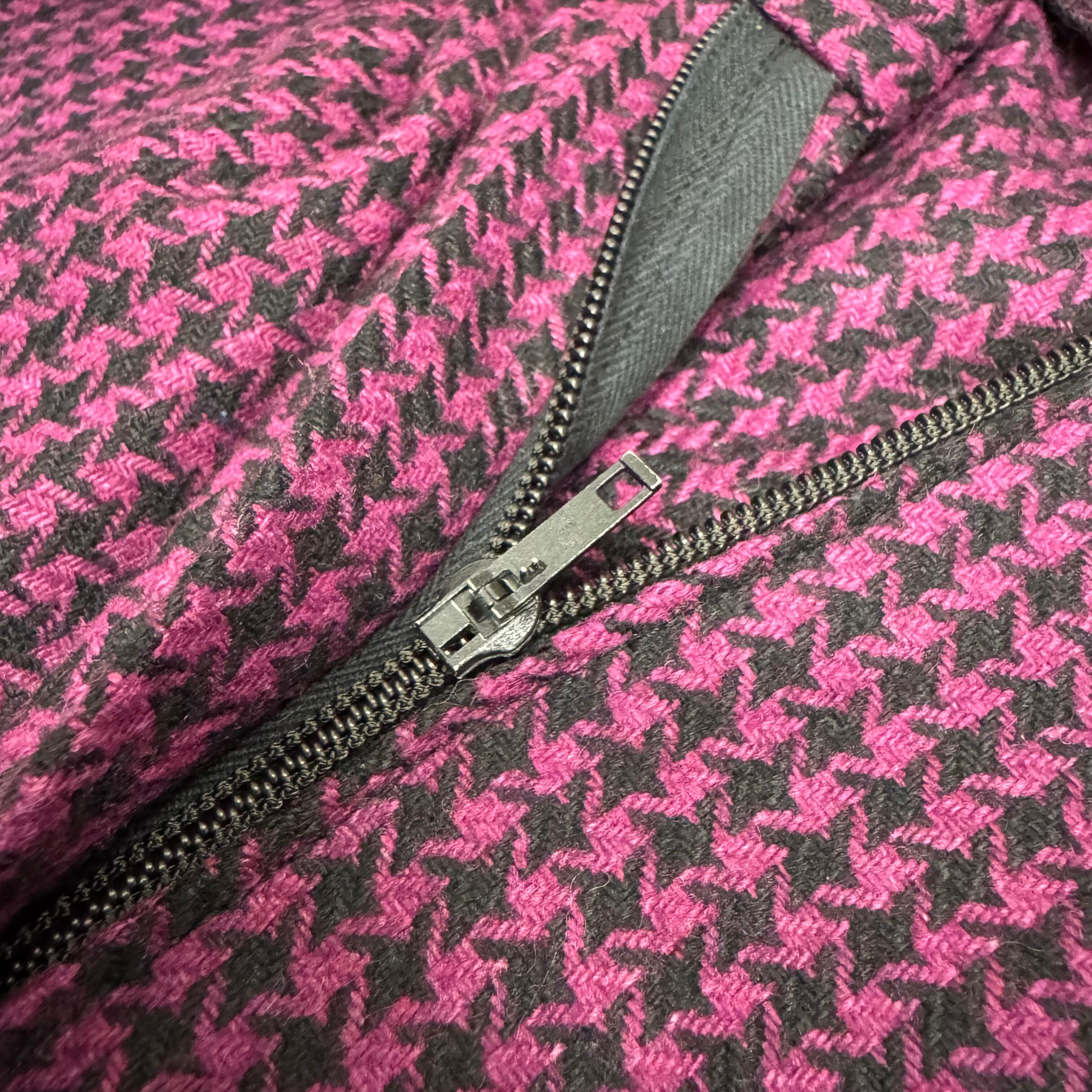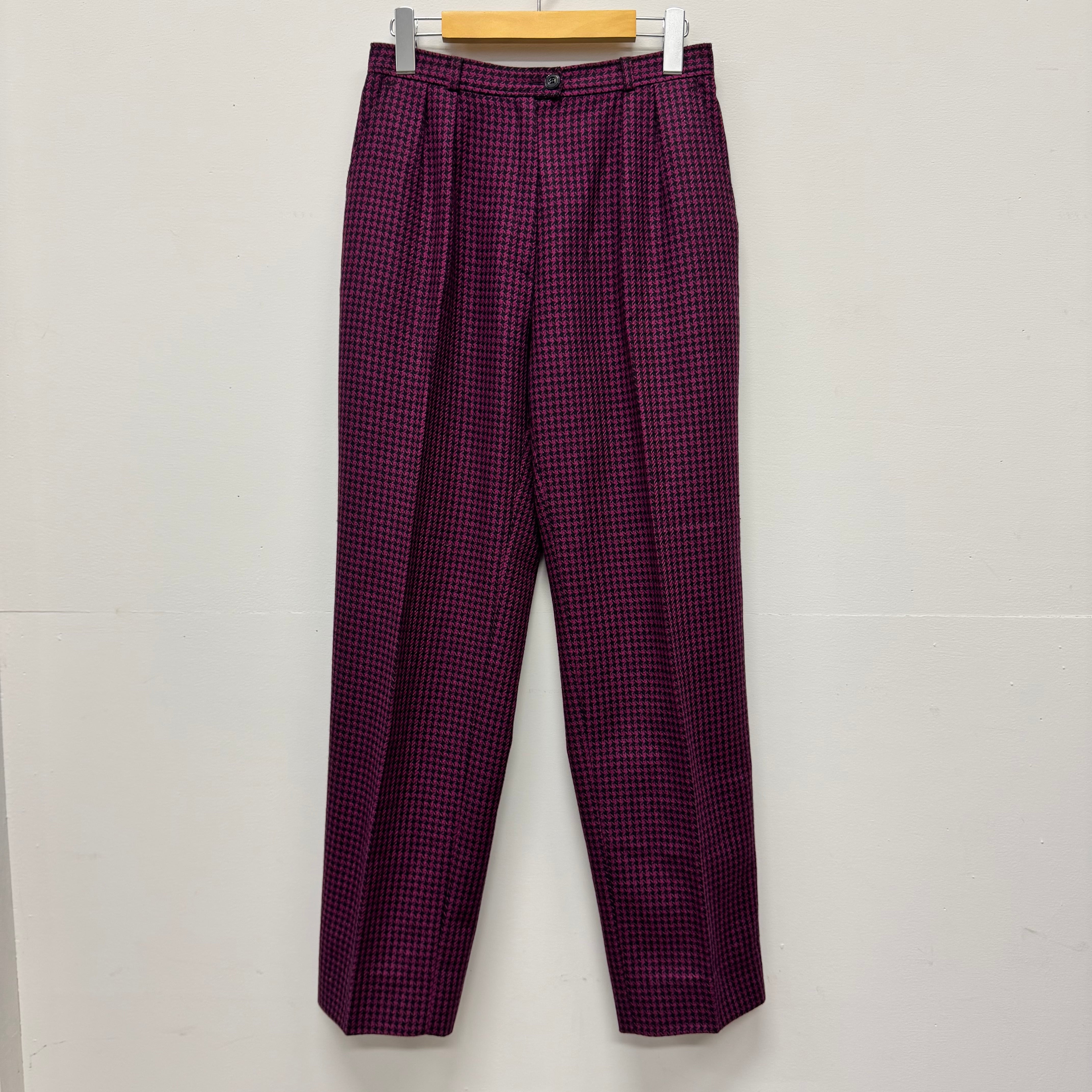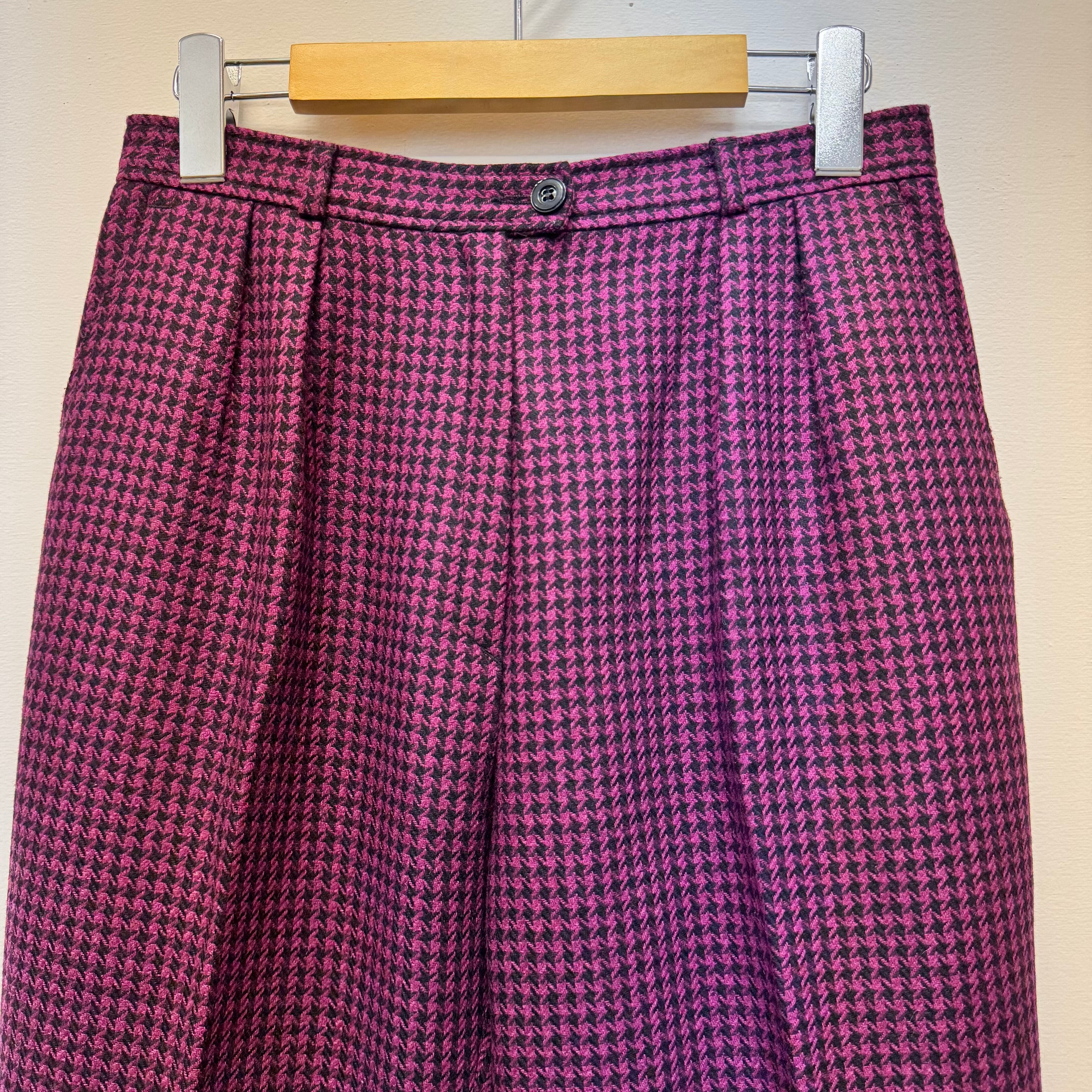 パープルとブラックの千鳥格子柄が特徴で、クラシックながらも存在感のある一本です。