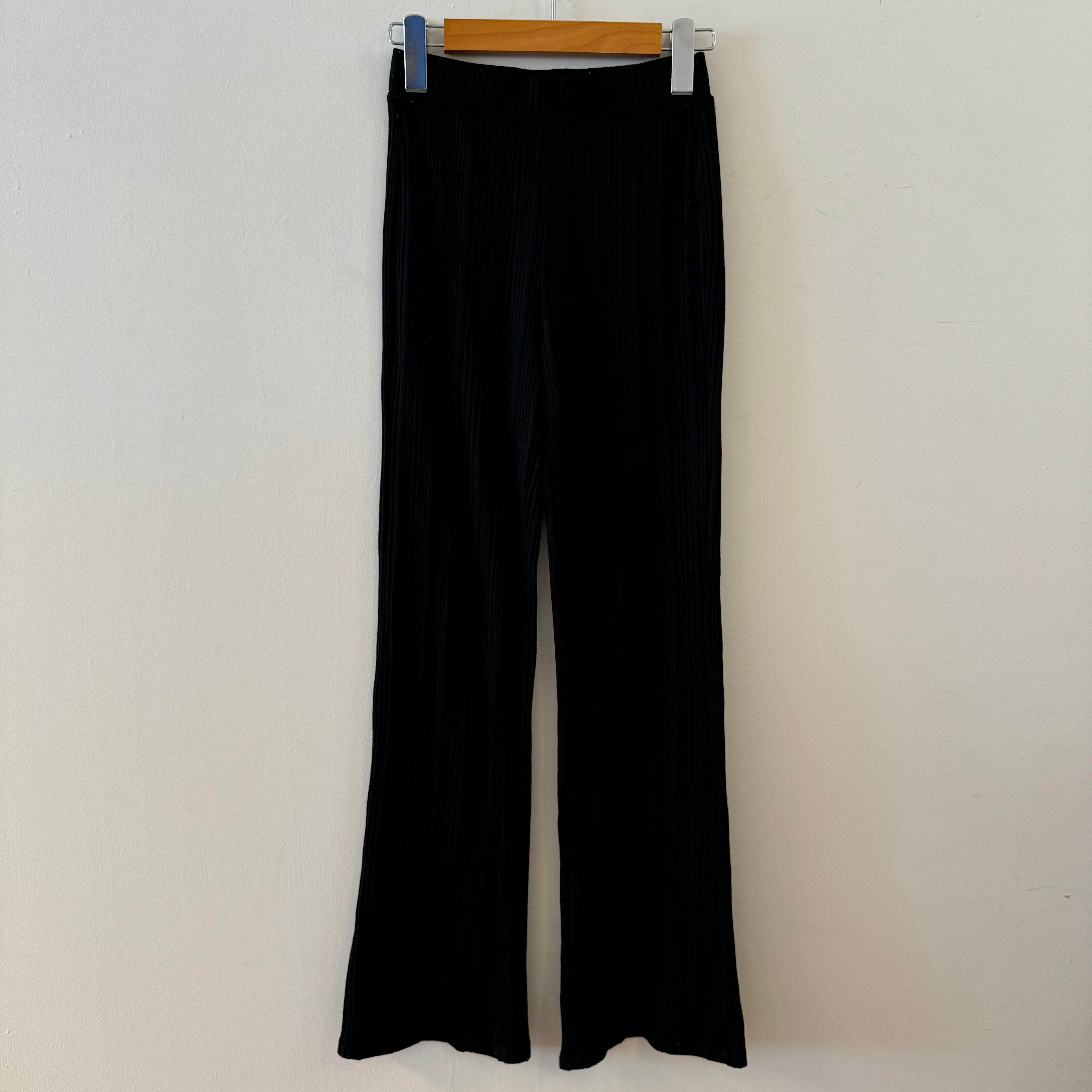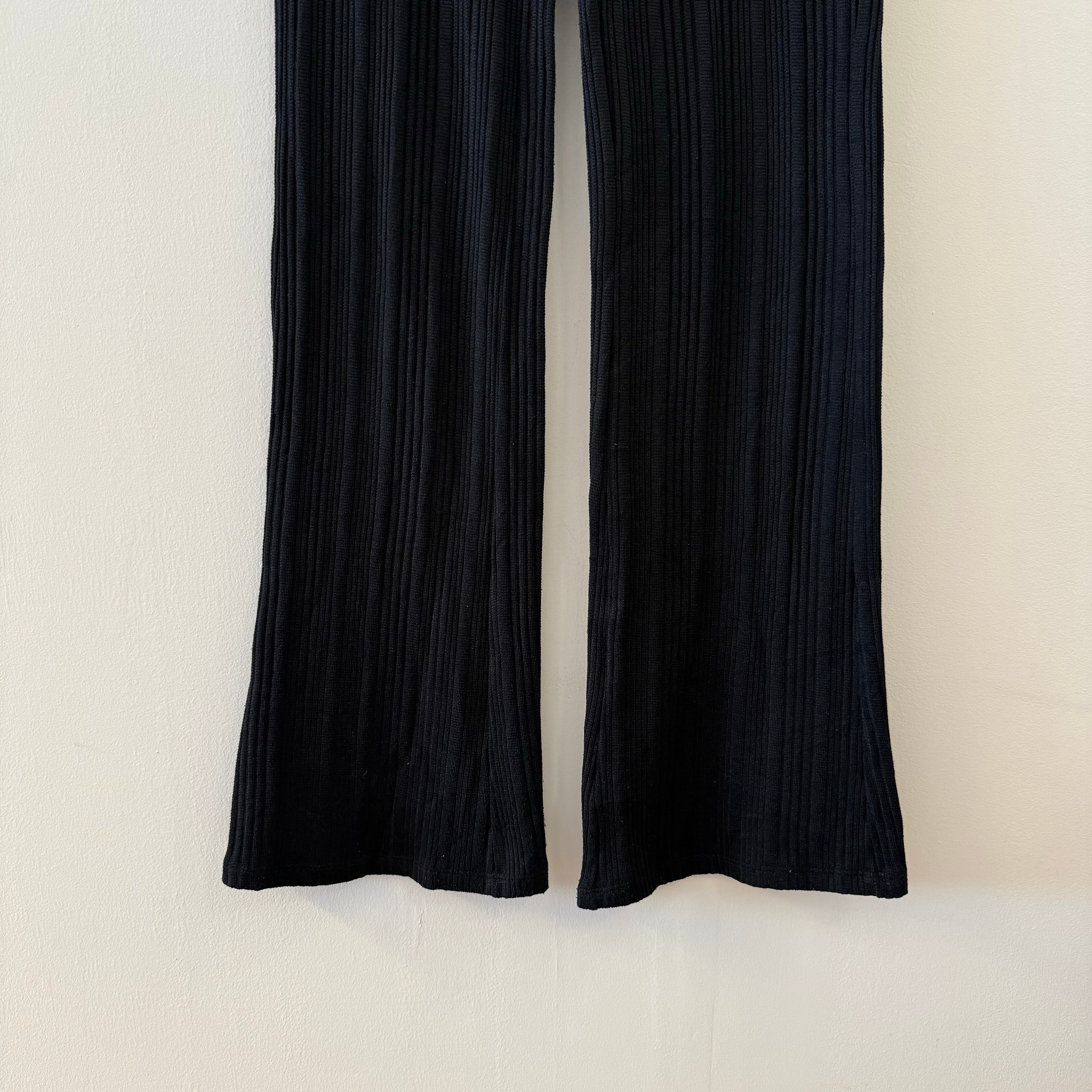商品詳細 : マルチなシーンで活躍するスタイリッシュなパンツです。フィット感のあるリブ素材が体に心地よくフィットし、フレアデザインが足元を優雅に見せます。シンプルなトップスとのコーディネートはもちろん、様々なスタイルに合わせやすいアイテムです。