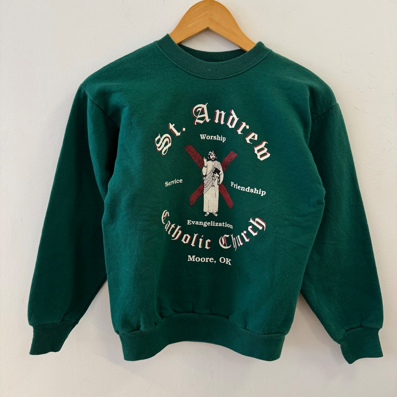 商品詳細 : オクラホマ州ムーアにあるセント・アンドリュー・カトリック教会のTシャツまたはスウェットシャツです。キッズサイズですが、コンパクトスウェットとしてご着用頂けます。