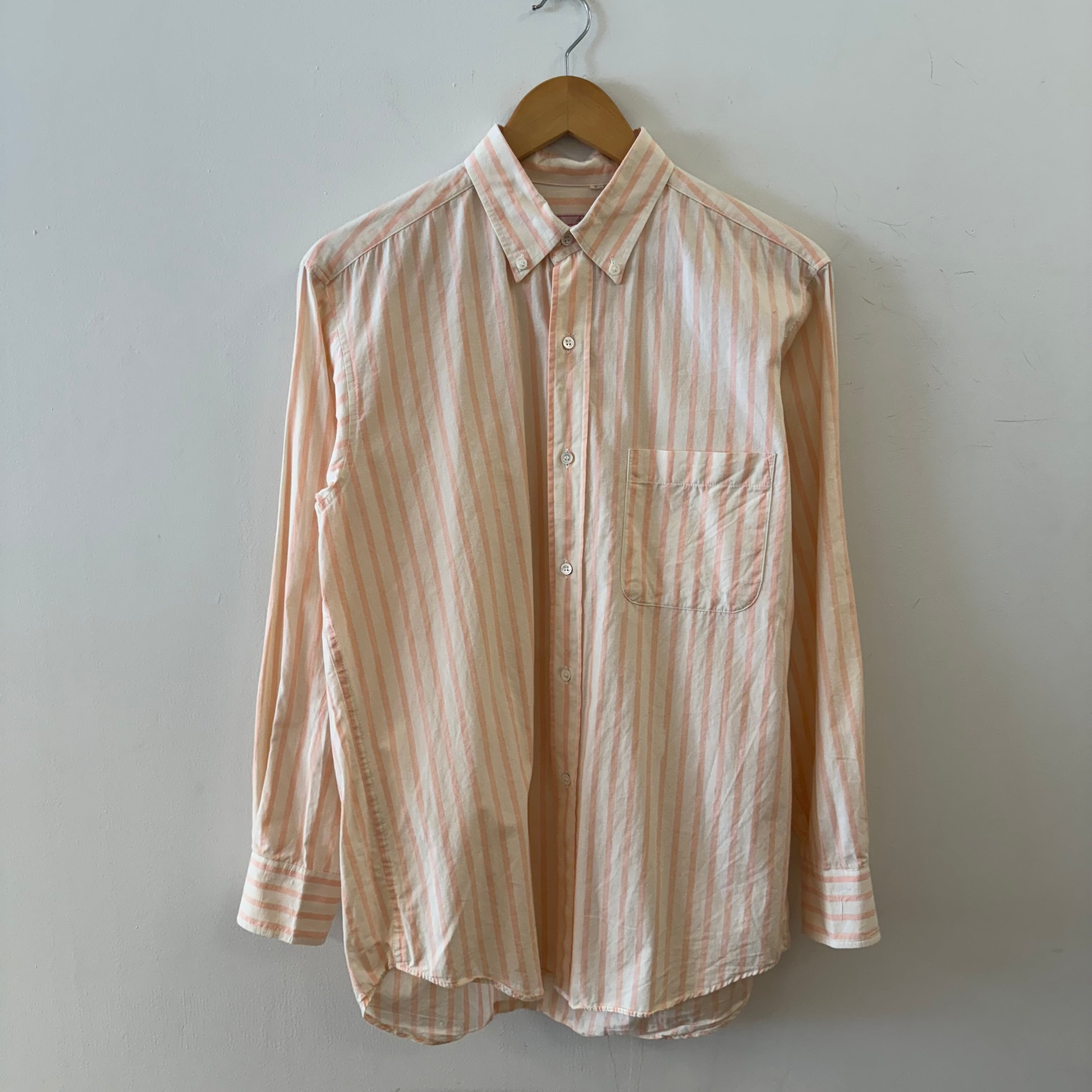 商品詳細 : ストライプデザインが印象的なボタンダウンシャツです!カジュアルでありながらも、さりげないおしゃれを演出するこのシャツは、デイリーコーデはもちろん、ちょっとしたお出かけにもピッタリです。肌触りの良い素材を使用しているため、快適な着心地を提供し、さまざまなスタイルにマッチします。このシャツで、あなたのファッションにスタイリッシュなアクセントを加えることができるでしょう。