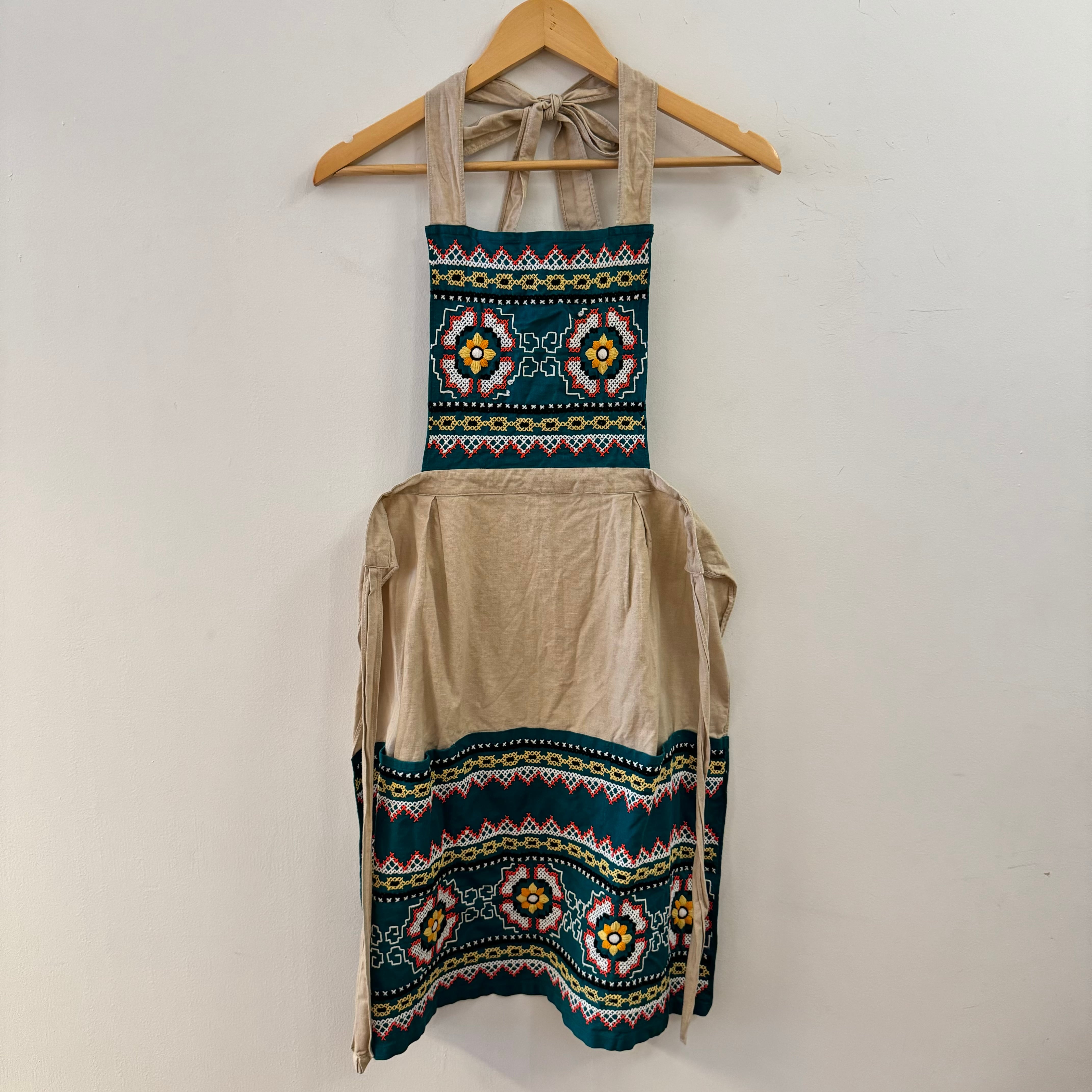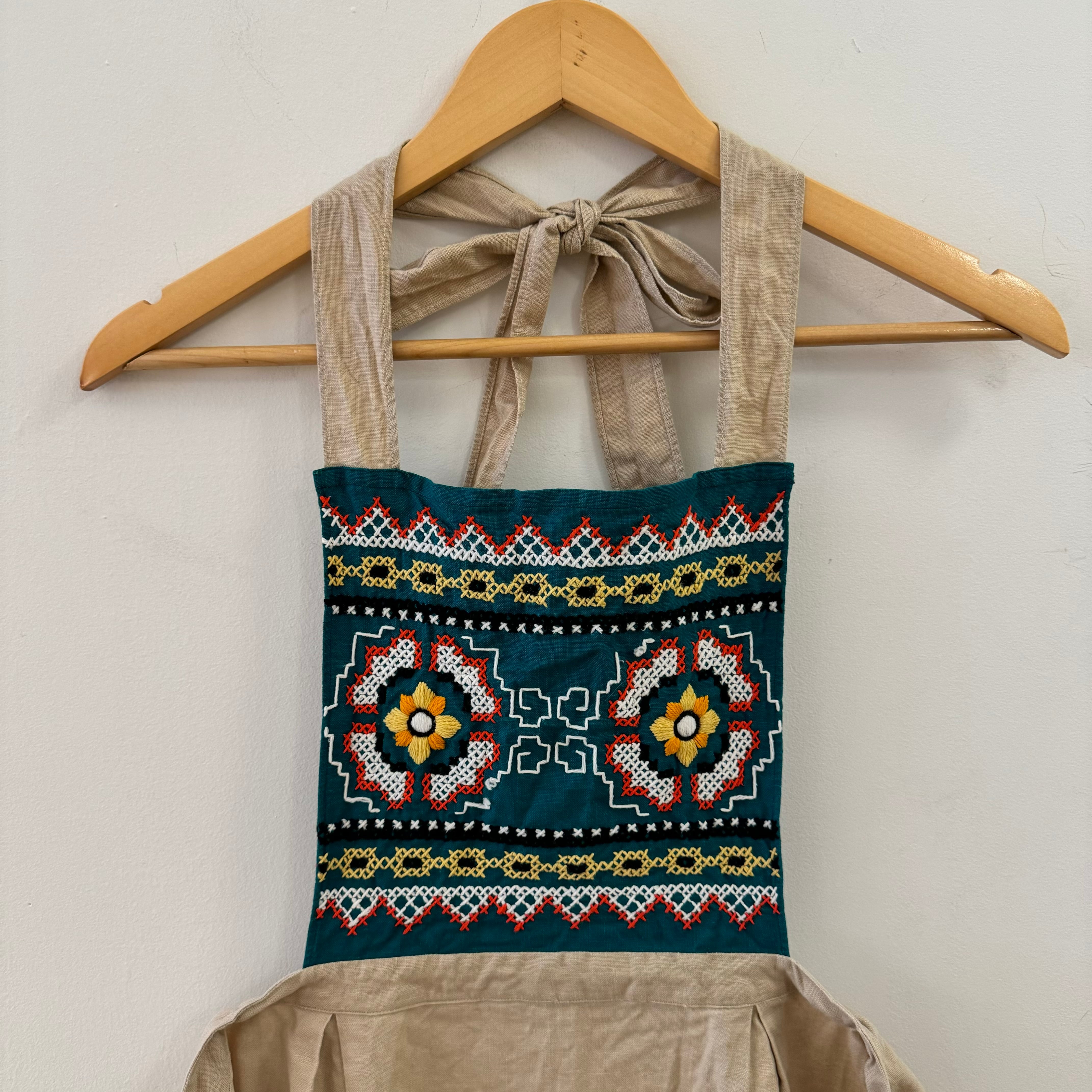 商品詳細 : 美しい刺繍が施されたエレガントなエプロンです!普段着に取り入れるとコーディネートがより一層華やかになります。