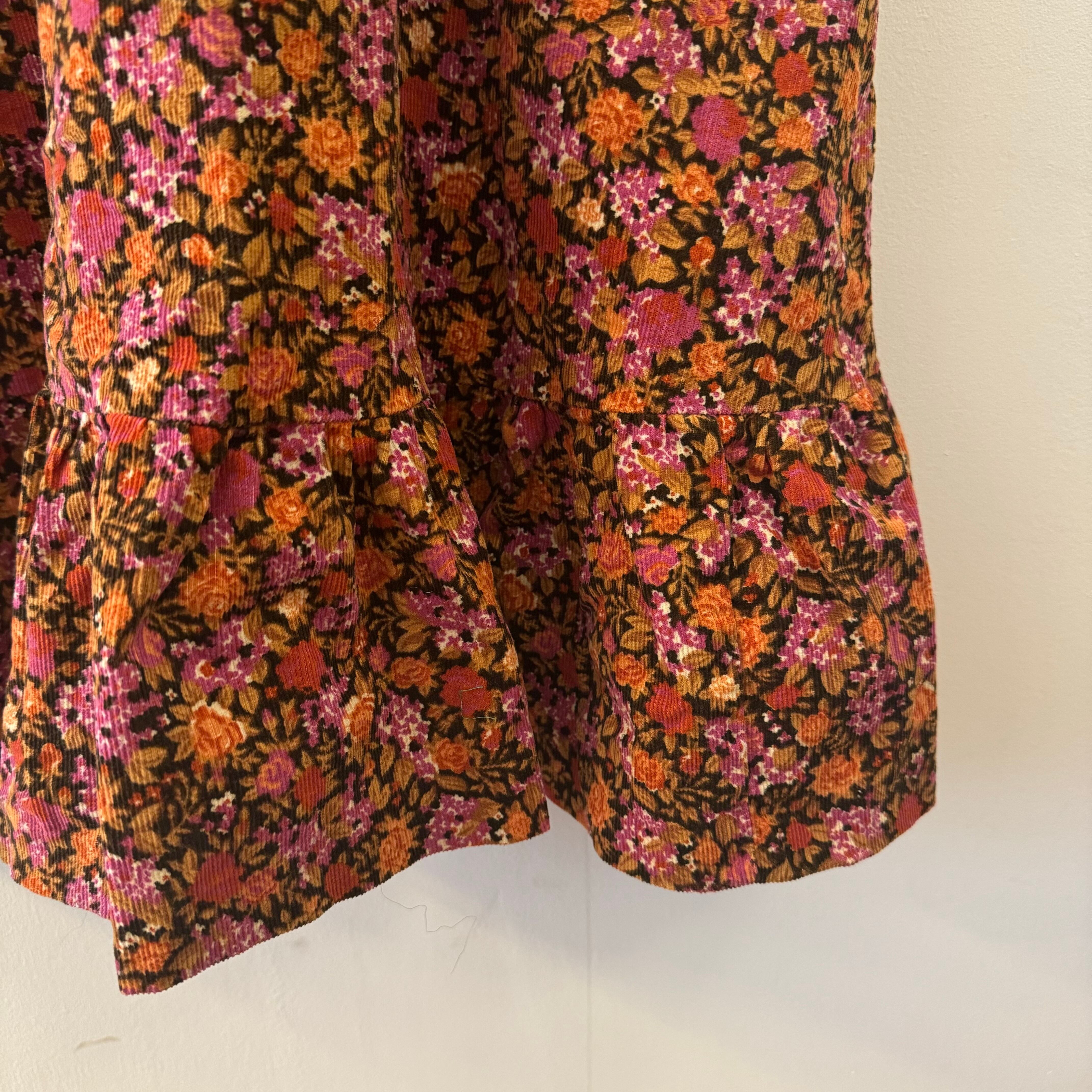 商品詳細 : エレガントな印象を与えるCorduroy multi flower cami dressです!多彩なフラワープリントがアクセントとなり、シーズンを問わず華やかな装いを楽しめます。このドレスを身に纏うことで、特別な日のお出かけにぴったりなコーディネートが完成します。