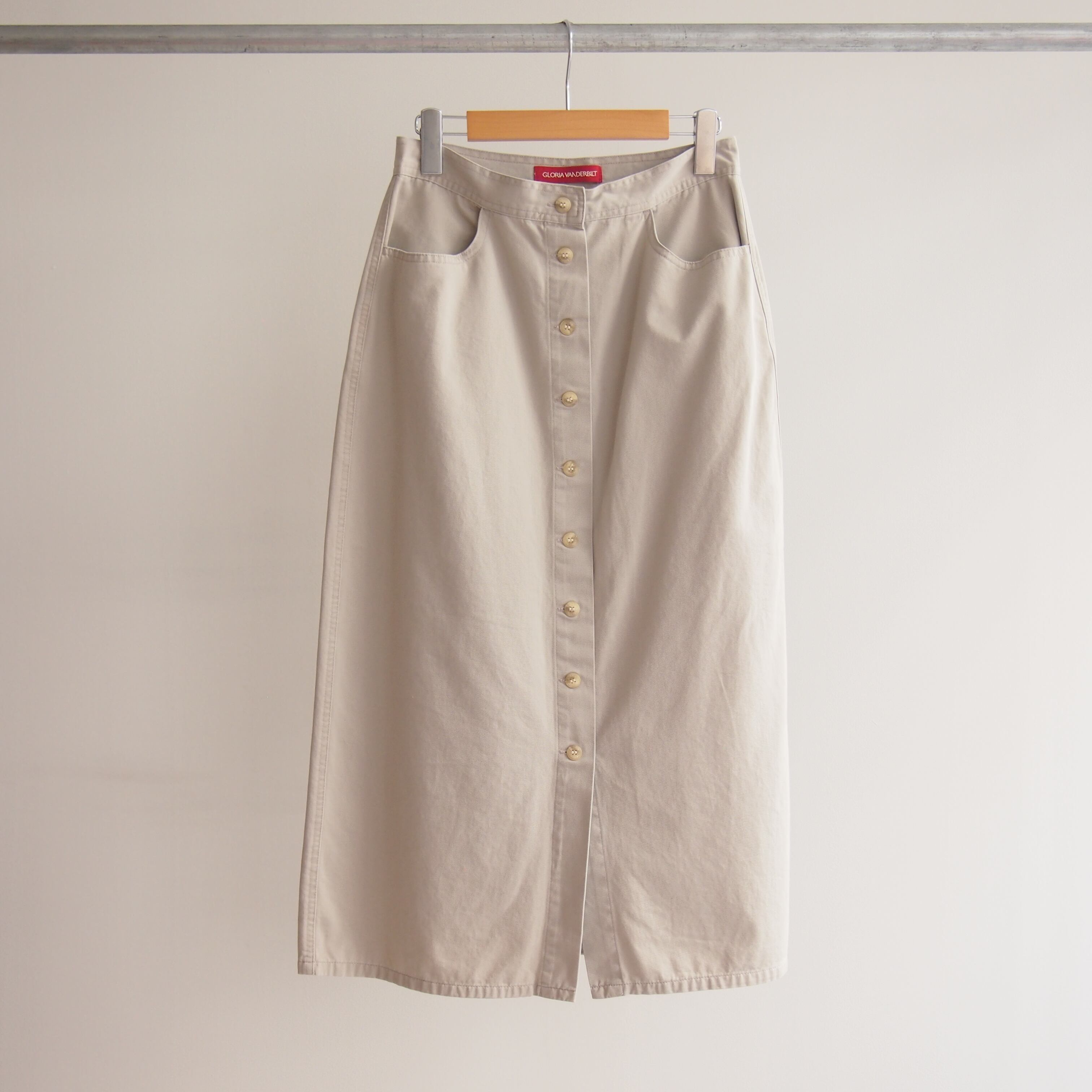 商品説明:シンプルなチノクロスのロングスカートです。
