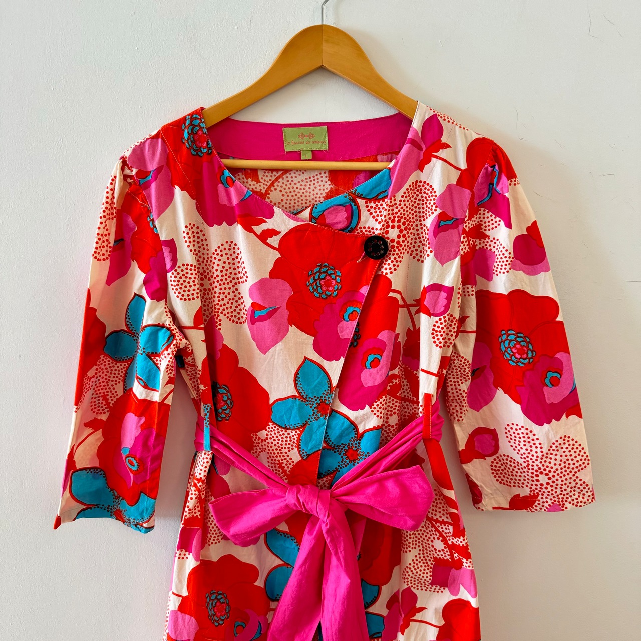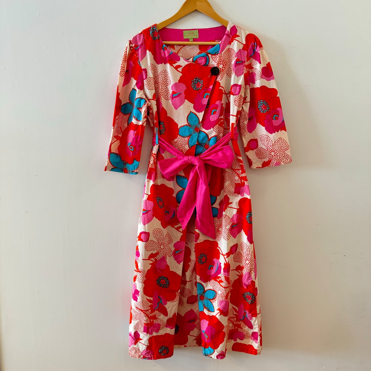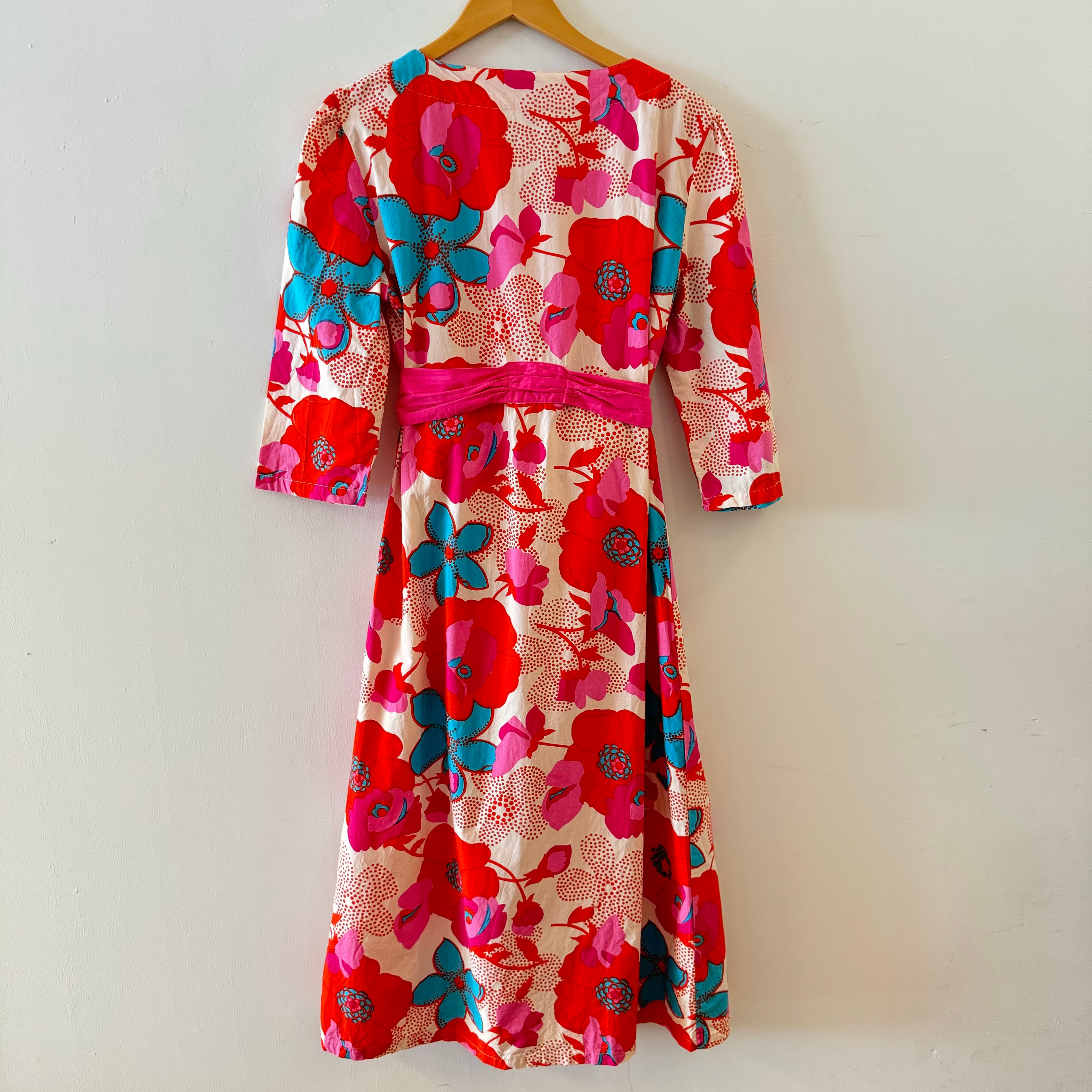商品説明:大ぶりの花柄がとても印象的なワンピースです。ラップの様で、実はスカート部分の生地は縫いつないであるので、安心してご着用頂けます。素材はコットンですが、カジュアル過ぎずオケージョンワンピとしても重宝してくれます。